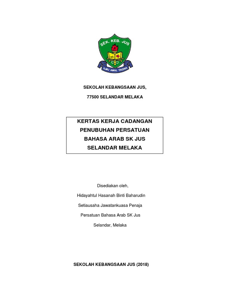 Dalam pada itu untuk menjalankan aktiviti-aktiviti kelab SMK Sri Perhentian akan mendapat bantuan nasihat dan tenaga pengajar dari Persatuan Induk Seni SIlat Sayong. Salinan contoh buku berkaitan dengan ketokohan Ibnu Khaldun. Kertas kerja cadangan penubuhan persatuan bahasa arab sk jus selandar melaka.